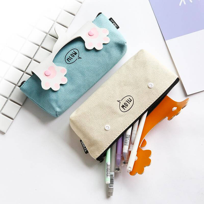 Cette trousse sera le compagnon idéal de vos crayons et vos stylos. Elle possède un double système de fermeture, une fermeture éclair et deux boutons pression en forme de petites pattes de chat.
